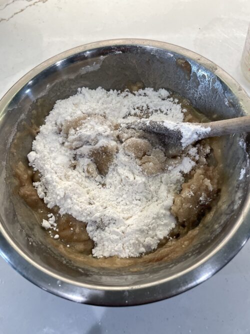 - Make the streusel topping. Mix all the ingredients* for the topping until crumbly. If it is too gooey or wet I add a little more flour and sugar.
